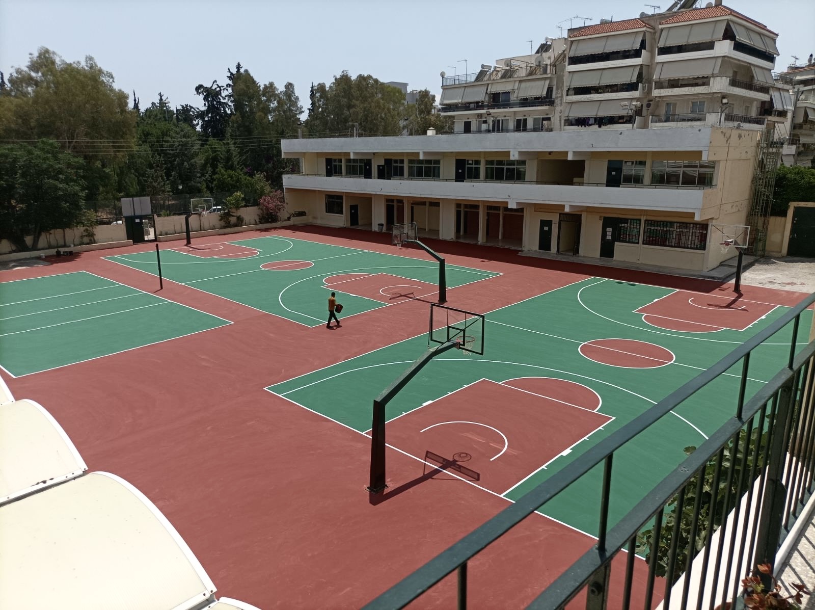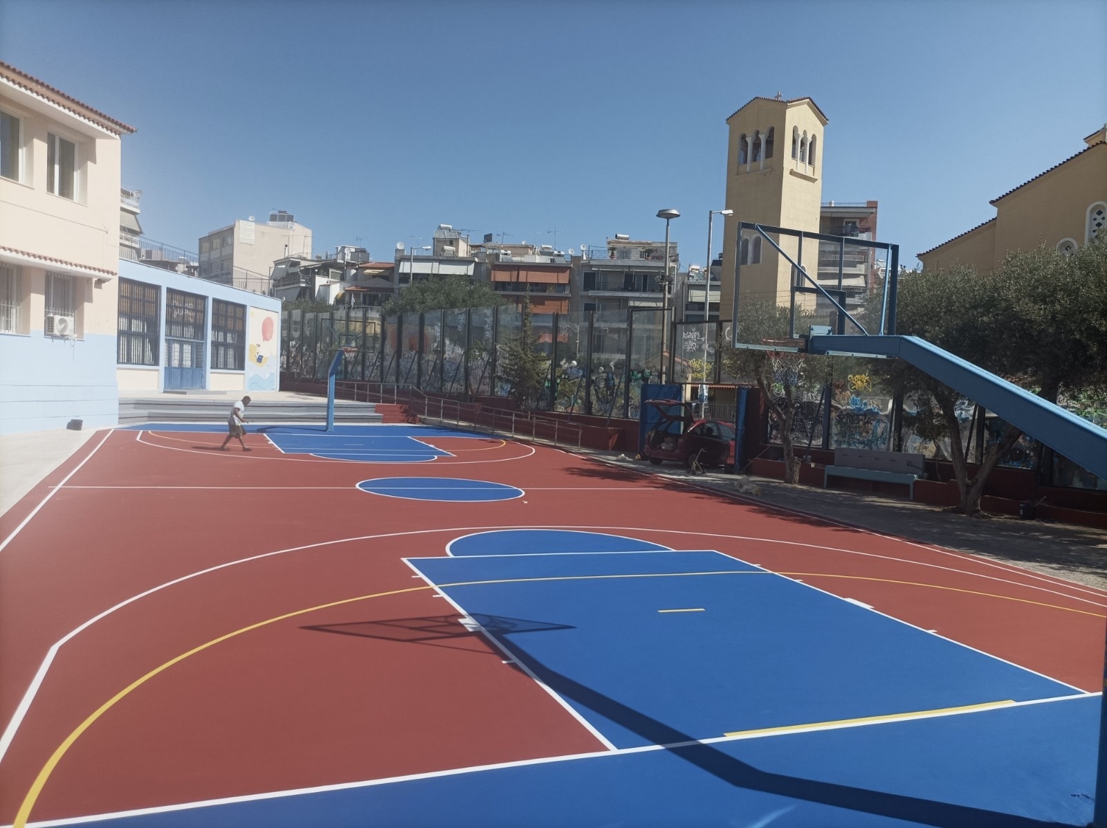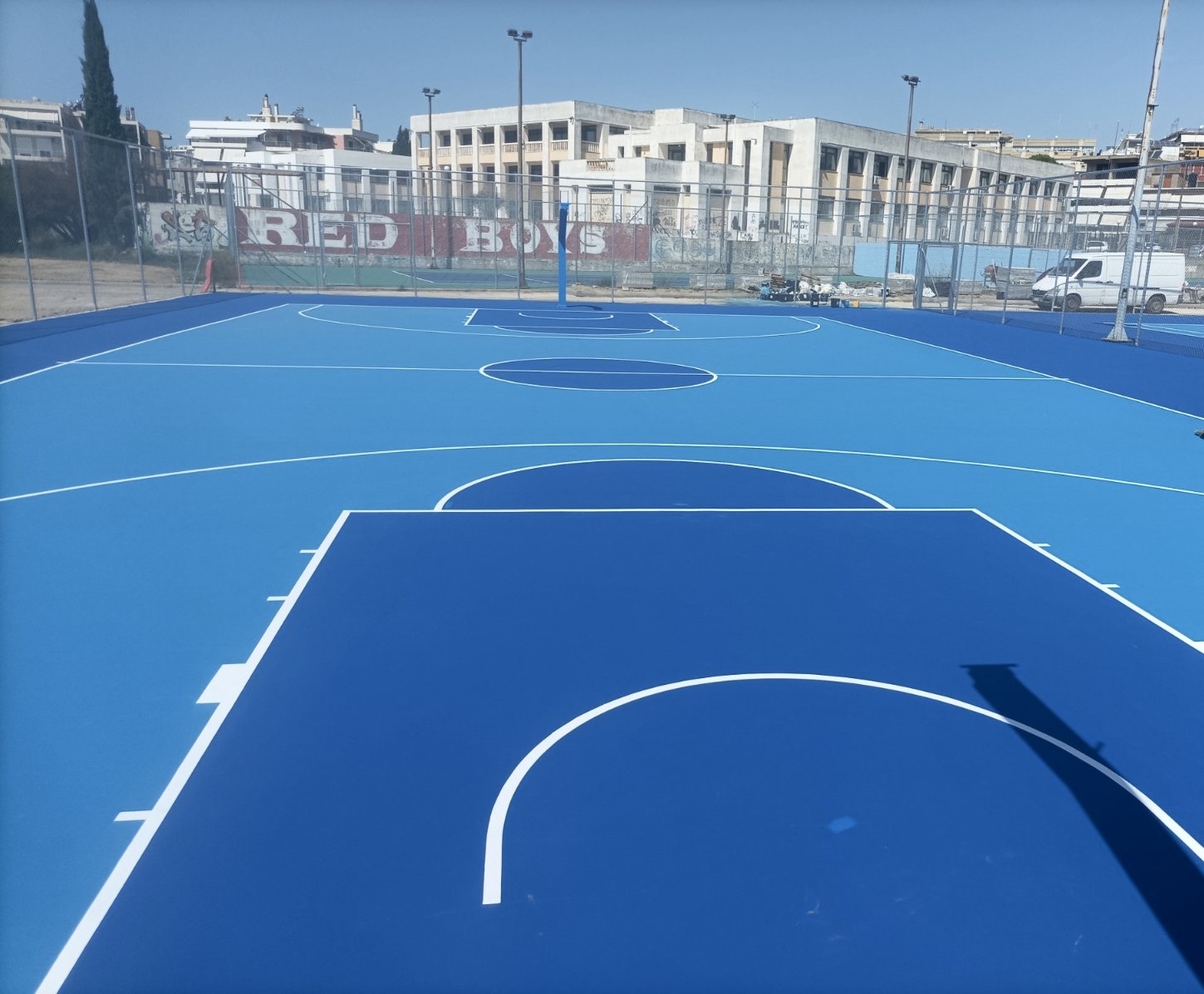 Βαφή τεραίν αθλοπαιδιών , γήπεδα τέννις, βόλεϊ , χάντμπολ κ.α. κατασκευασμένα από τσιμεντοκονία , άσφαλτο και μπετόν.